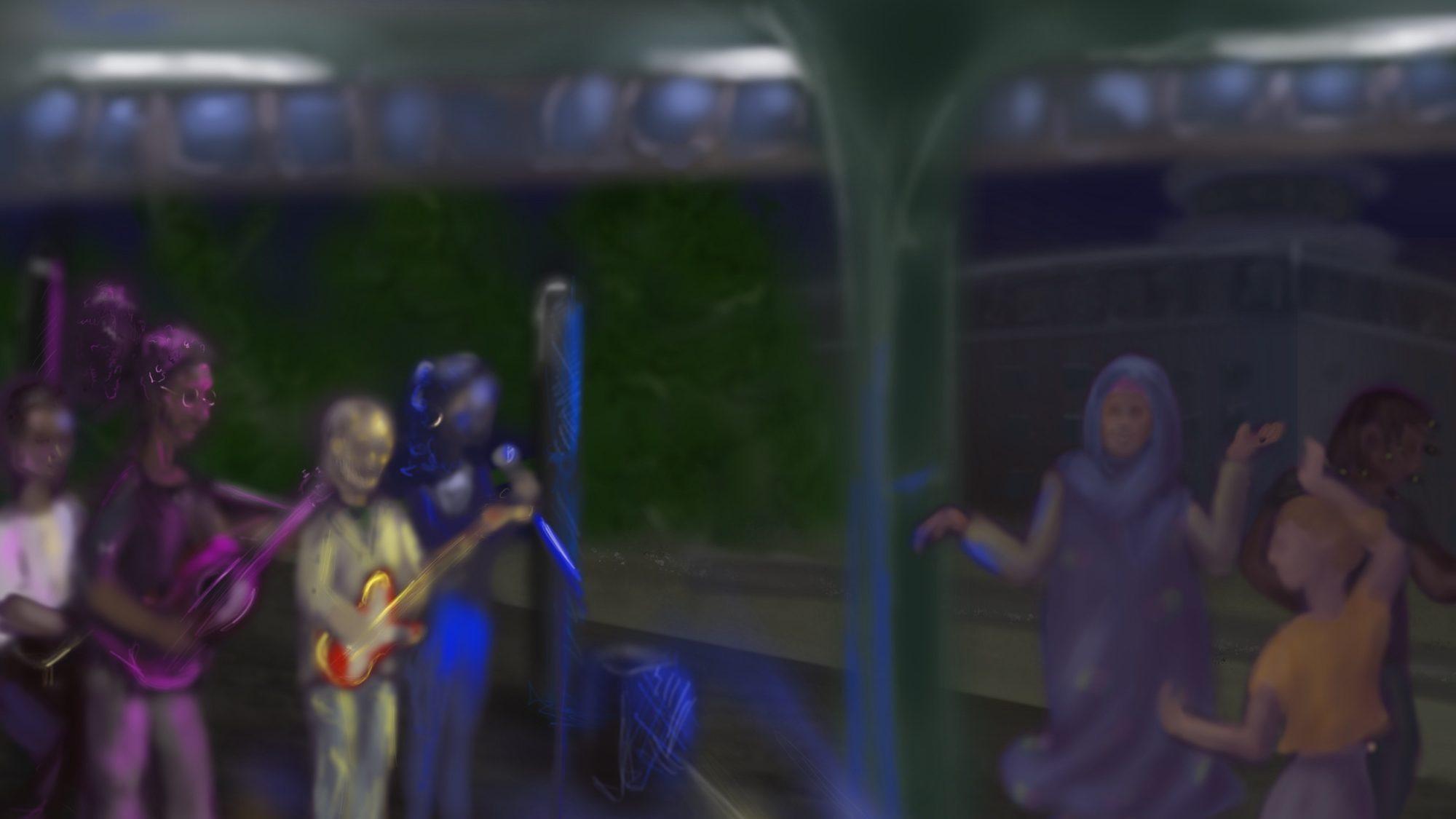 Das Titelbild zu diesem Blog-Eintrag zeichnete unsere Praktikantin Adriana Koutraki während der Eröffnungsparty. Danke!