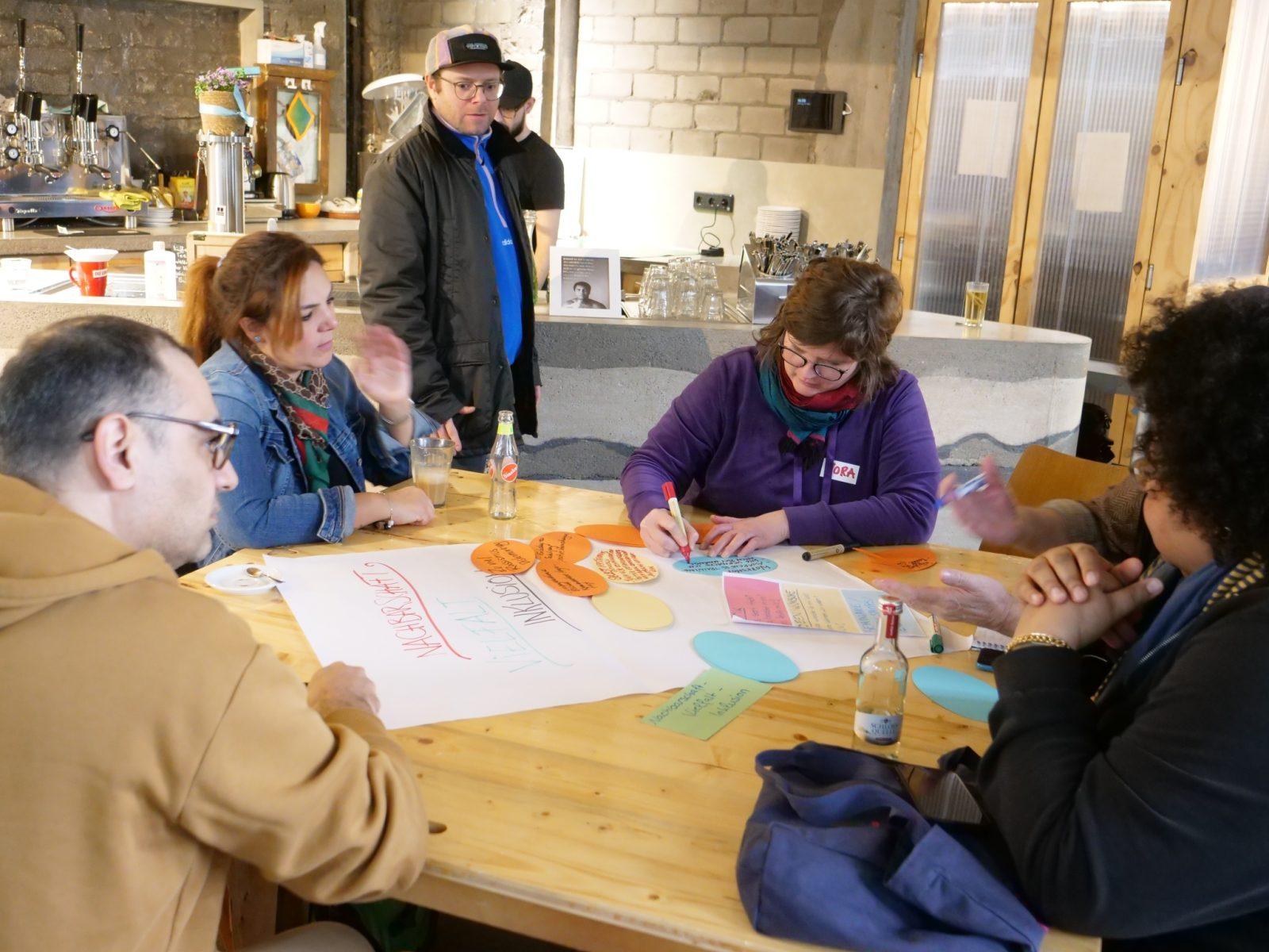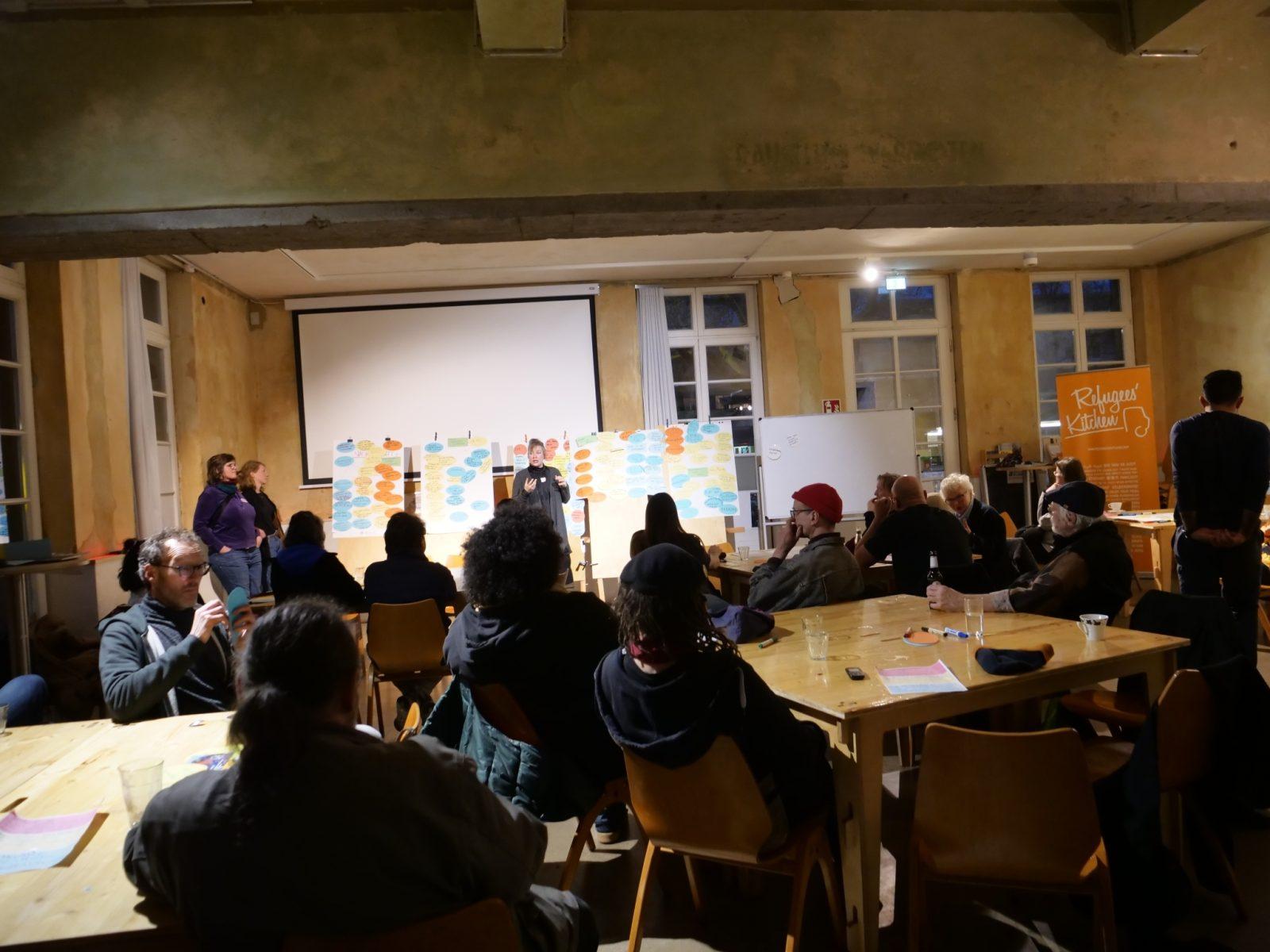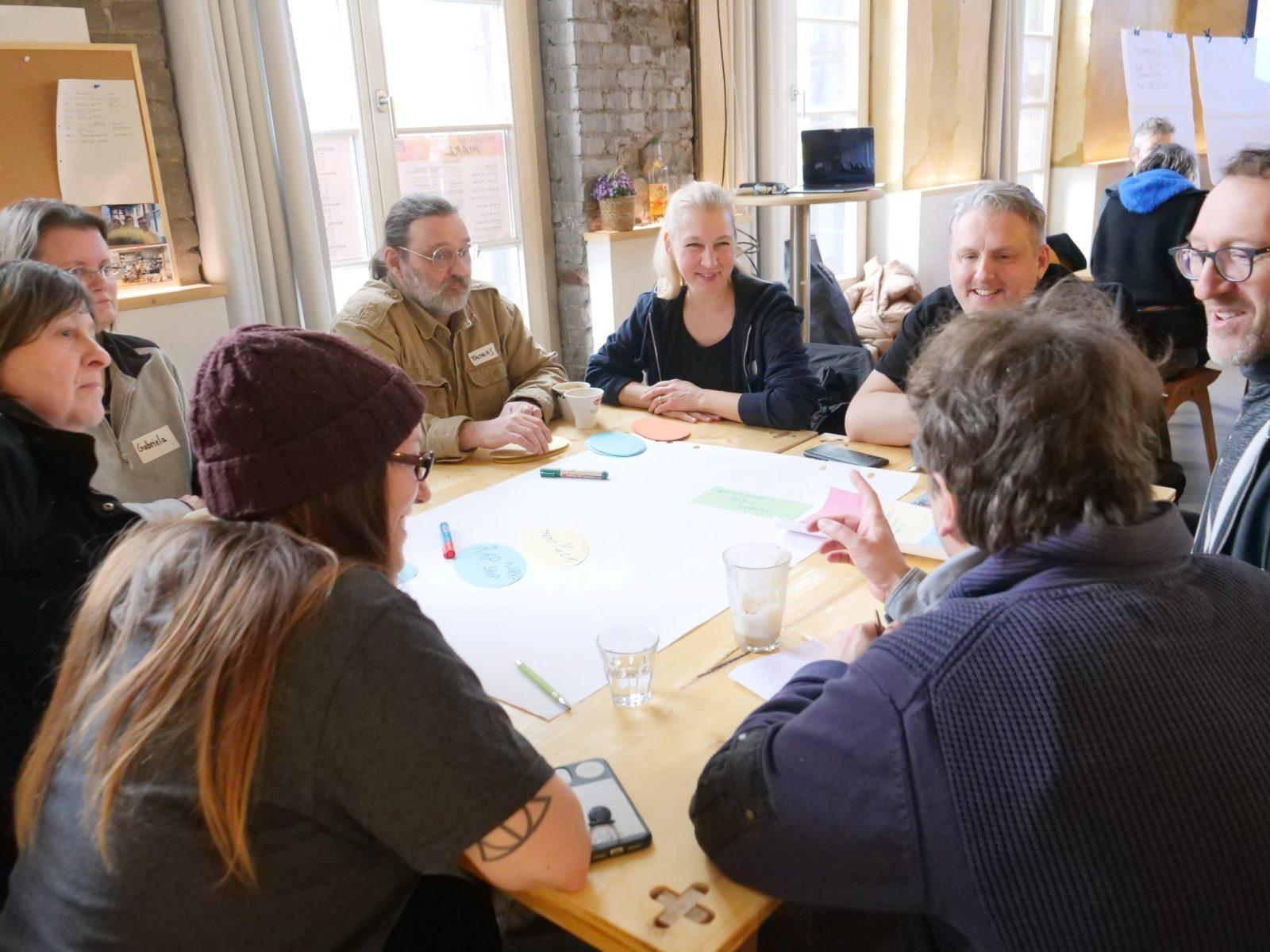„Stadt – Raum – Natur“, „Politik – Geschichte – Diskussion“, „Gemeinsam – Aktiv – Kreativ“, „Nachbarschaft – Vielfalt – Inklusion“, „Kinder – Jugend – Alter“ waren die Themenfelder, zu denen sich die rund 30 Interessierten austauschten. Welche Probleme gilt es anzugehen, welche Ideen und Wünsche um dies zu tun? Und wie können diese Wünsche und Ideen konkret in unserem Quartier umgesetzt werden? Knapp 3 Stunden lang wurde heiß diskutiert und gebrainstormt, bis die Köpfe rauchten. Am Ende gab es mehr Ergebnisse als wir sortieren konnten und eine leckere vegane Gulaschsuppe.