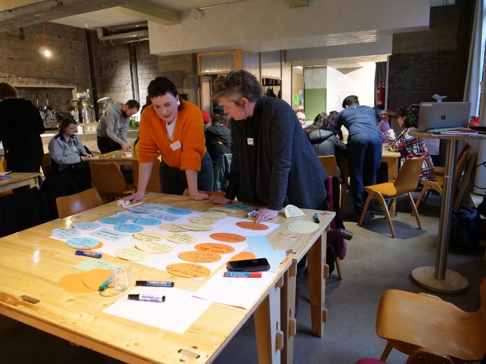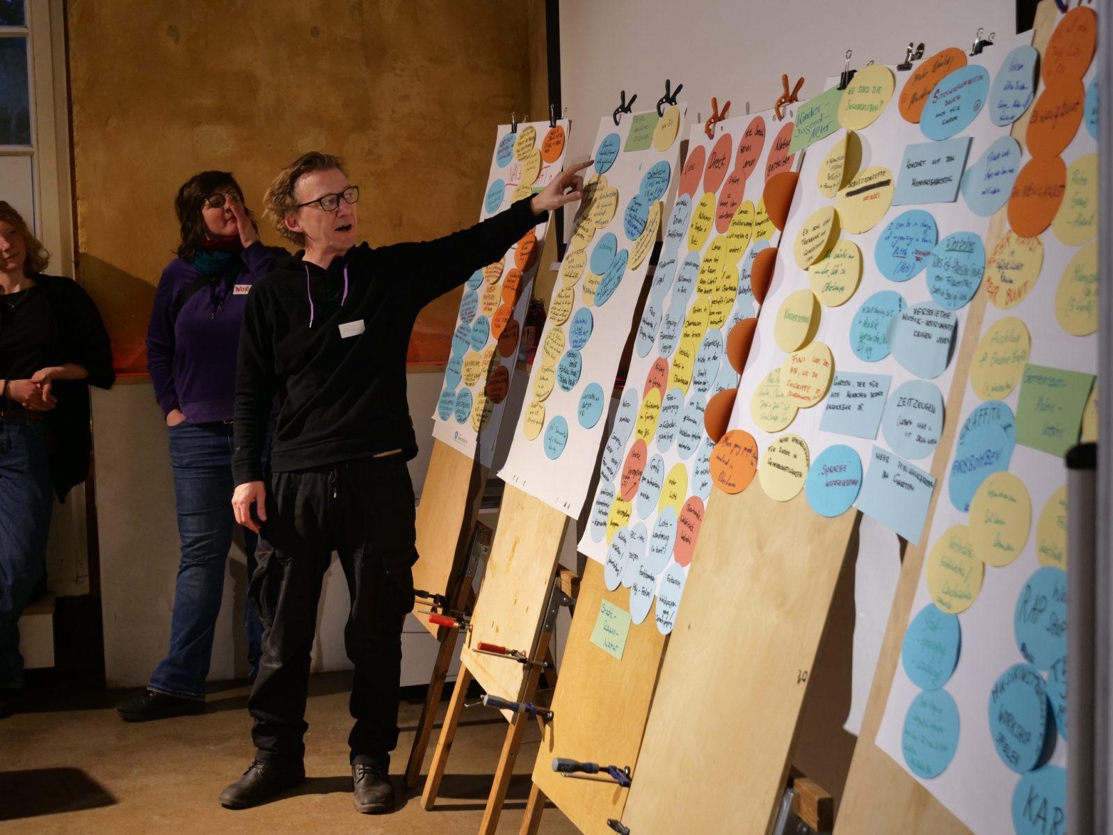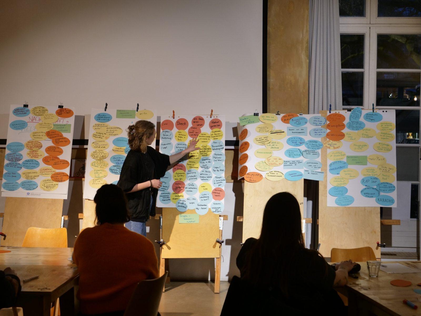 Gemeinsam mit den Teilnehmer*innen der Gründungskommission gehen wir nun in die Cluster-Konkretisierungs-Arbeit des Materials, um aus den formulierten Seminarideen und -wünschen das Programm für das neue Semester aufzustellen.