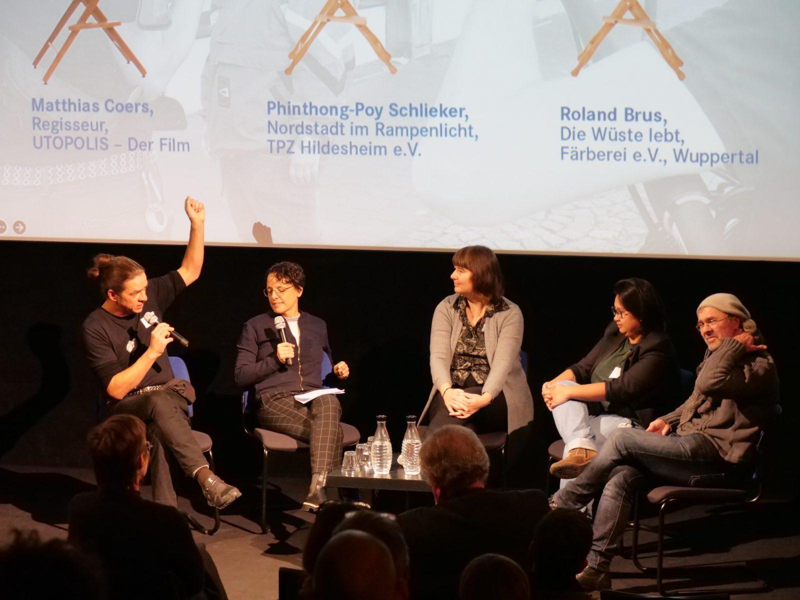Denn der Zentral- und Höhepunkt dieser Abschluss-Veranstaltung war die Preview eines Kino-Films über die Utopolis-Arbeiten in allen 16 Standorten. Realisiert wurde er von unseren kitev-Partnern Matthias Coers und Grischa Dallmer. Unterstützt wurden diese Filmemacher von einem Dramaturgieteam aus 6 Utopolis-Mitwirkenden, darunter auch Stefan Schroer von kitev.