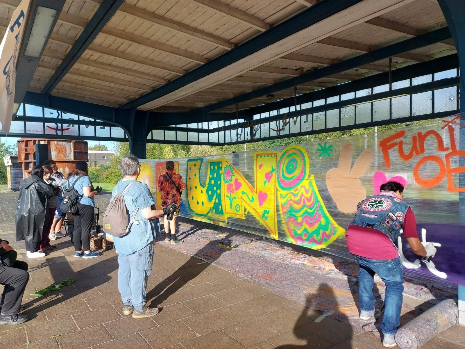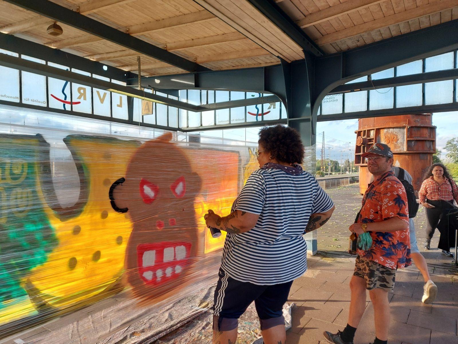 Frisch ausgeruht und erholt haben wir mit einem bunten Midterm-Event die zweite Semesterhälfte eingeläutet. Es war wunderbar familiär und gemütlich auf unserem Museumsbahnsteig – und sogar die Sonne ließ sich blicken, während Urban Street Art Legende Nils gemeinsam mit seinen Workshopteilnehmer*innen einen perfekten Backround für die eingeladenen Tänzer*innen sprayte, die dort performten.
