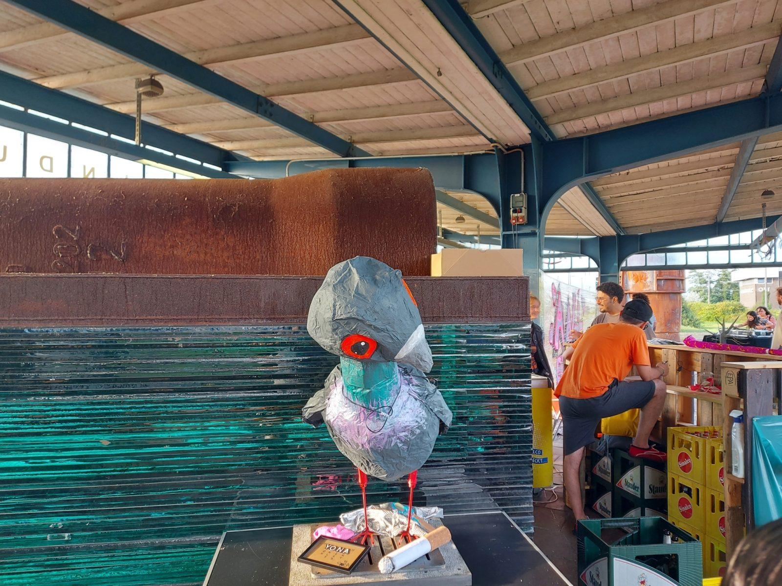 Eine überlebensgroße Taube wachte derweil über Start- und Endpunkt der familienfreundlichen Geocache-Tour "Tierische Kunst in Oberhausen", die in der ersten Semesterhälfte entstand. Die Tour werden wir euch auch sobald wie möglich hier auf unserer Homepage zur Verfügung stellen!